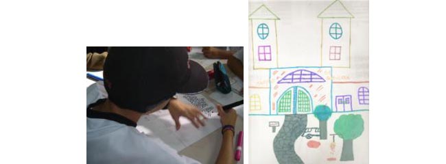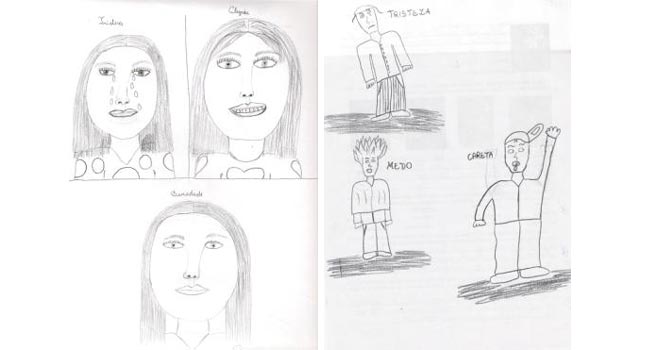Matheus, Turma A. / Brenda, Turma C (frente e verso do desenho).