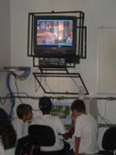 que projetava a imagem numa grande tela, no auditório do Colégio
